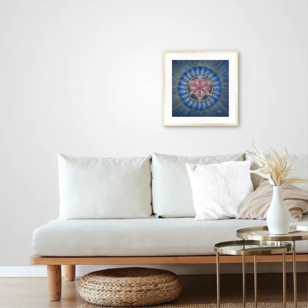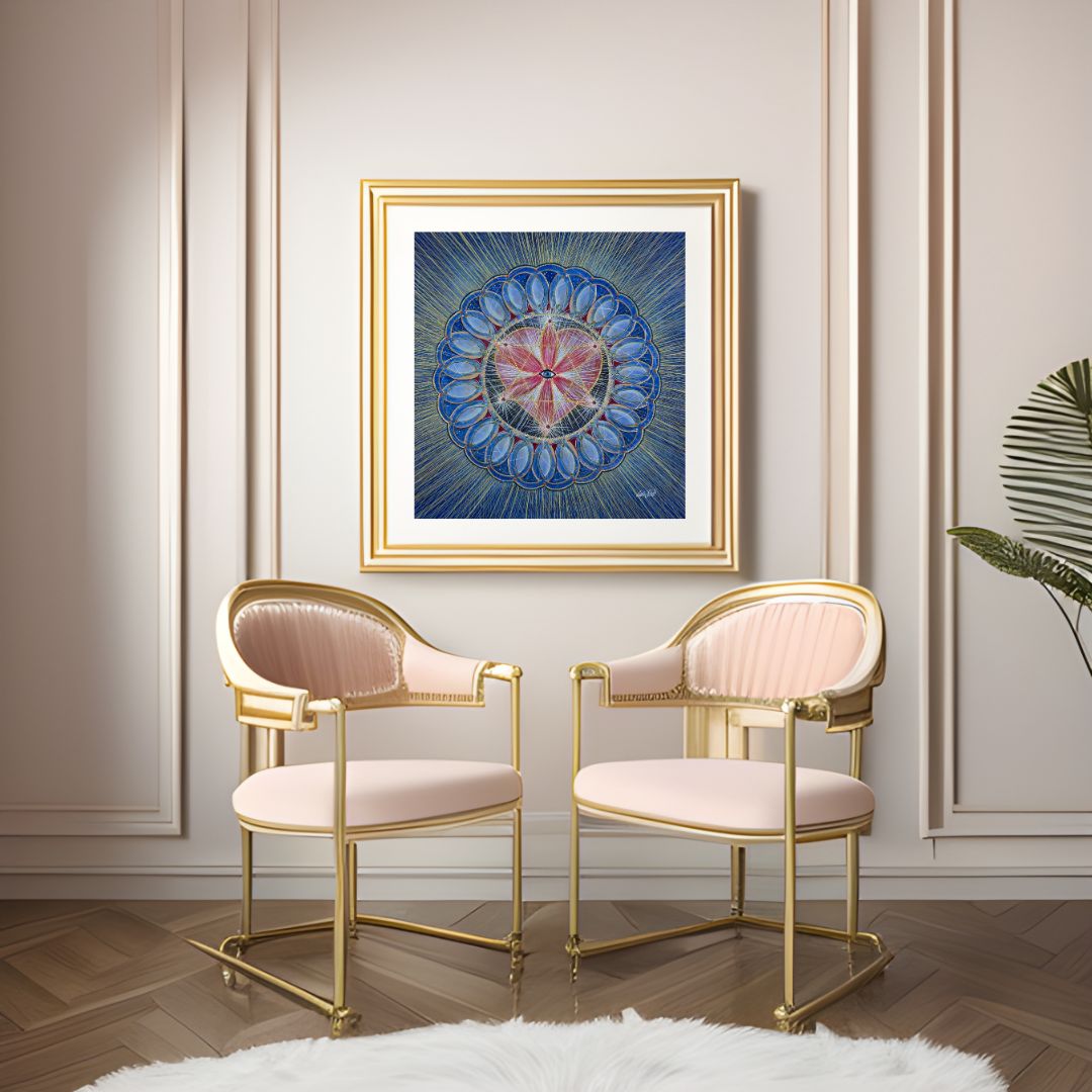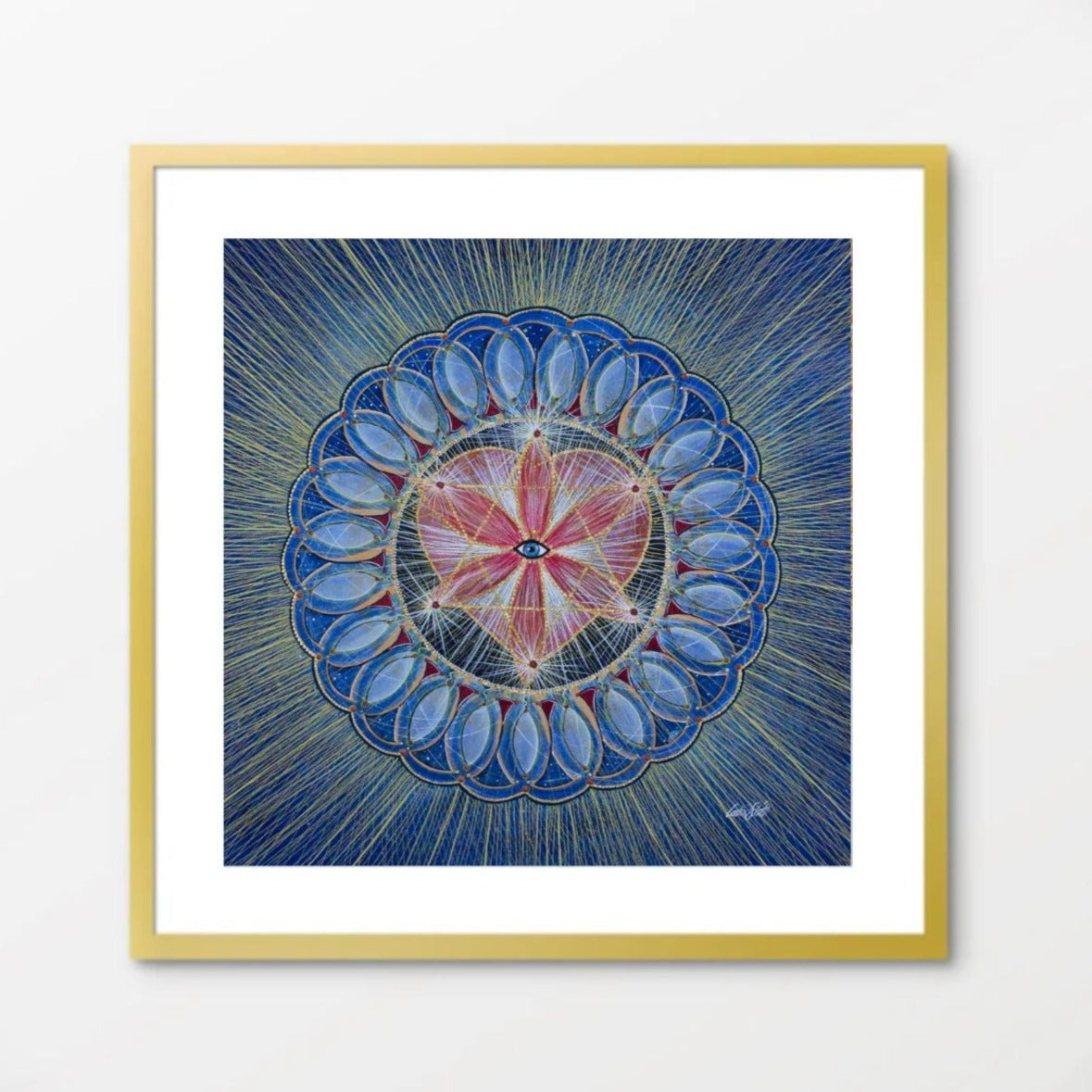 Ljuspunkten i våra hjärtan, punkten som brinner inom oss alla. Det är den ursprungliga punkten av liv. Längst in är lågan blå, om du tänder en tändsticka så ser du att lågan är blå. Stråla nu av rent ljus som får människor att hitta hem i mörkret i sig själva. Allsmäktige fadern sonen och den helige anden Återförenade förankrade i en fysisk kropp på planeten jorden. Stå i korsningen av tidslinjerna i ditt hjärta (i tavlan) det är knutpunkten. Varje stråle är en livserfarenhet du erfarit. Varsågod, ta del av dina erfarenheter. Analysera ej, din själ vet.