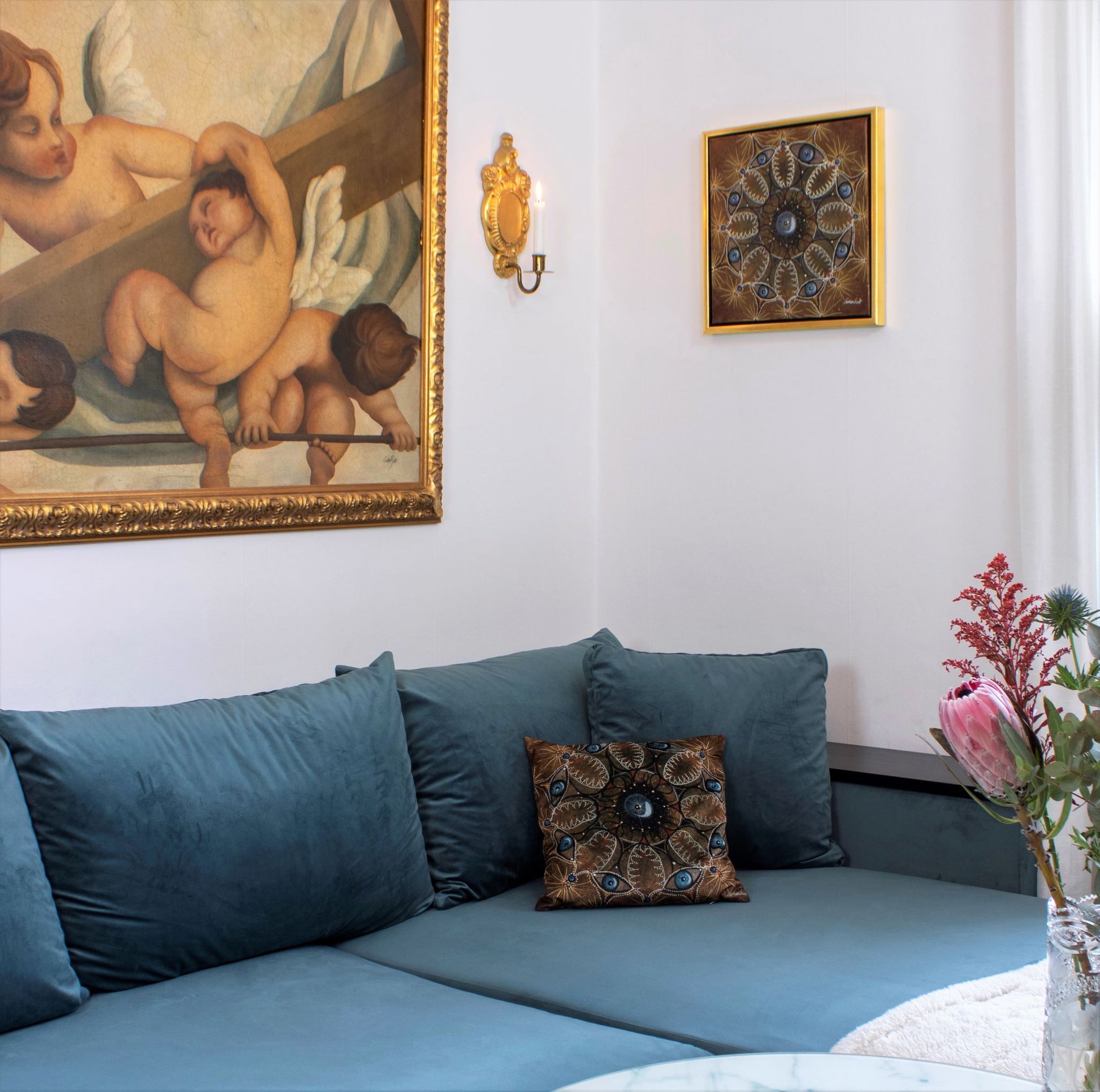 Unique cushions with motifs designed from the Rays of Love Collection painted by Catrin Skött in luxurious soft velvet. Made in Sweden. Press both sides with hidden zipper.