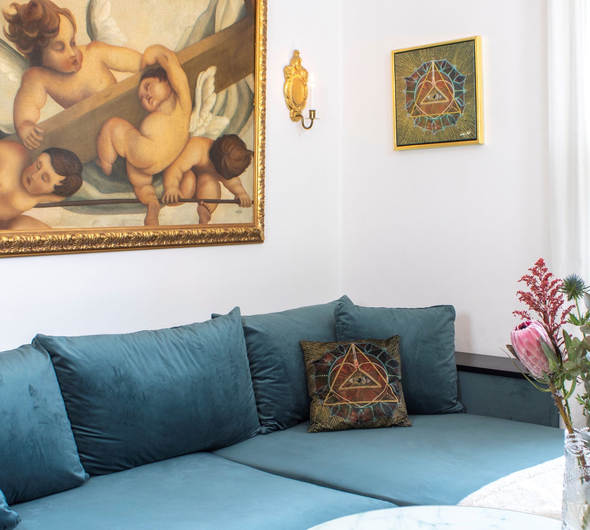 Unique cushions with motifs designed from the Rays of Love Collection painted by Catrin Skött in luxurious soft velvet. Made in Sweden. Press both sides with hidden zipper.