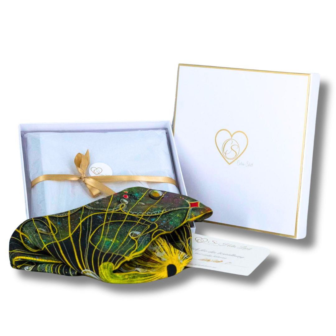 The silk scarf is an endless source of creativity and storytelling that is constantly evolving thanks to the new patterns and color combinations. Feel free to contact me and suggest another motif from my paintings for next scarf.