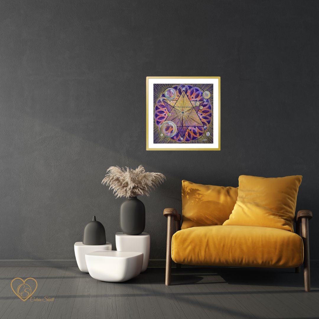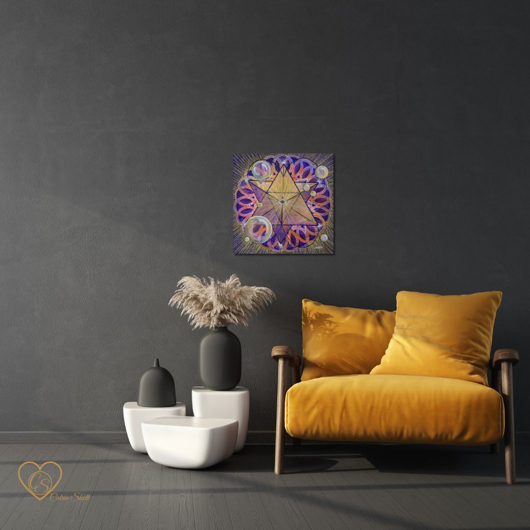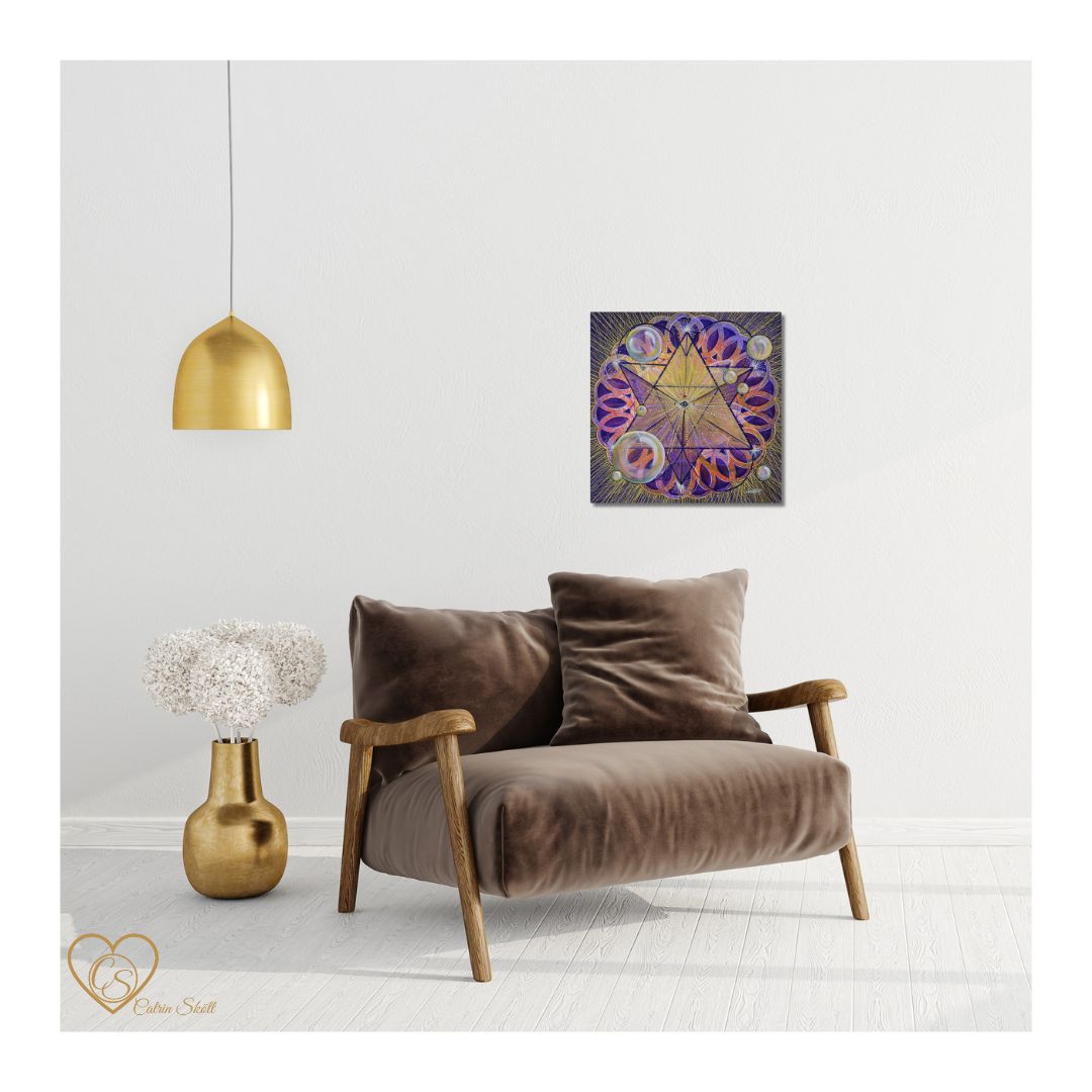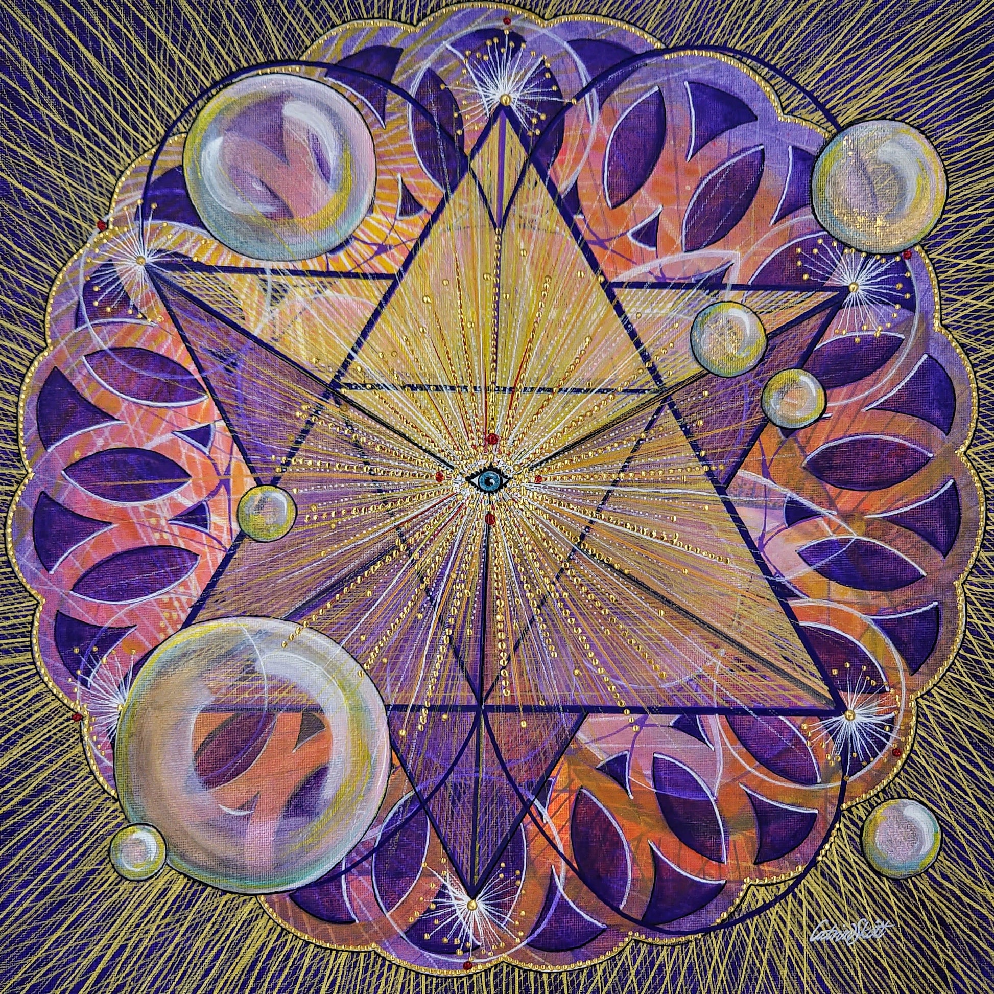 Channeled text from Metatron: The painting symbolizes the cycles of life seen from a cosmic perspective. A "portal" to a new time for you on earth, a new timeline. You get past , or enter through a passage. Opens up or accesses a new view. Like reading a new chapter in a book. You have read it before and are hungry for something new. A new phase is available when you are ready for it and is drawn to the board. Like a book on the bookshelf that was there but you didn't read. Now you see it (if you are drawn to it) and are ready to learn, experience something new."All roads lead to Rome" All openings in the Merkaban lead to the innermost. You have the free choice to approach life from the angle you have. All roads lead "home" You have your free choice, but the openings are always there for you to go "into". There is always an opening/entrance for everyone no matter what we choose. You are always welcome to take the creator's hand/help no matter what. So now my friend, open the door/portal and enter. Take my hand because I'm always with you Welcome to a new dimension, point of view in life. /Metatron