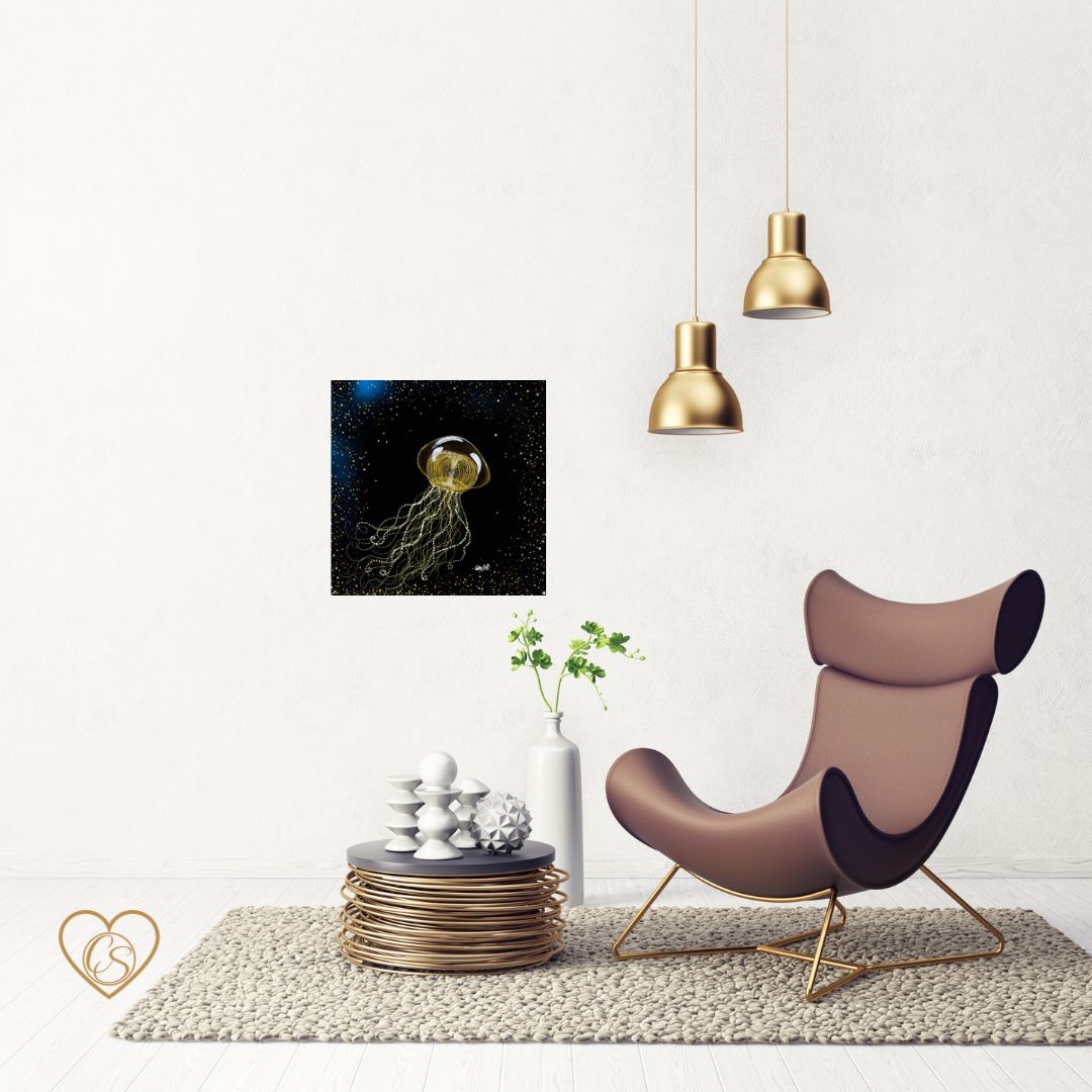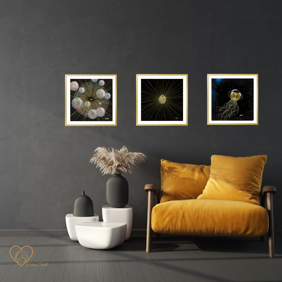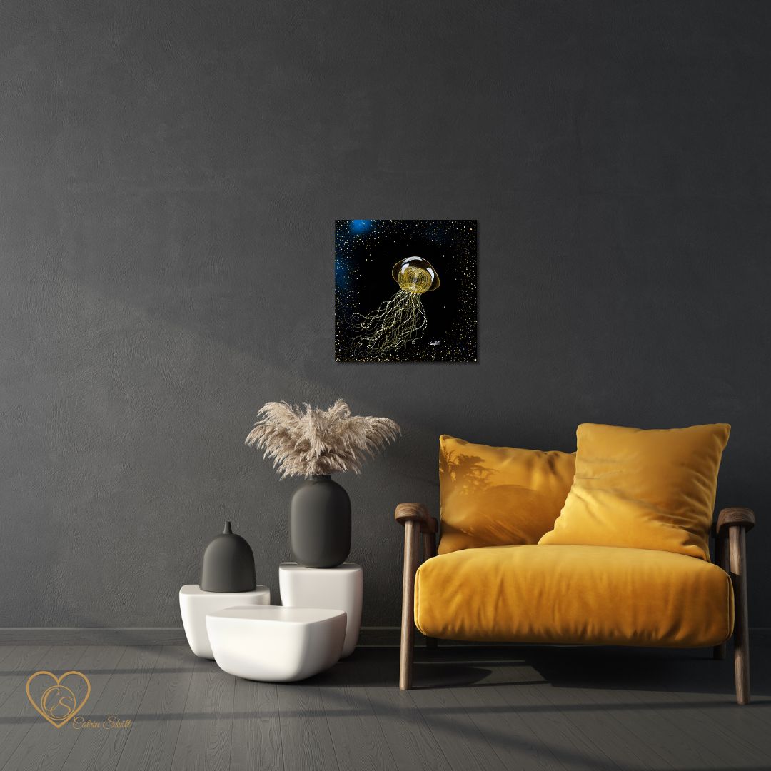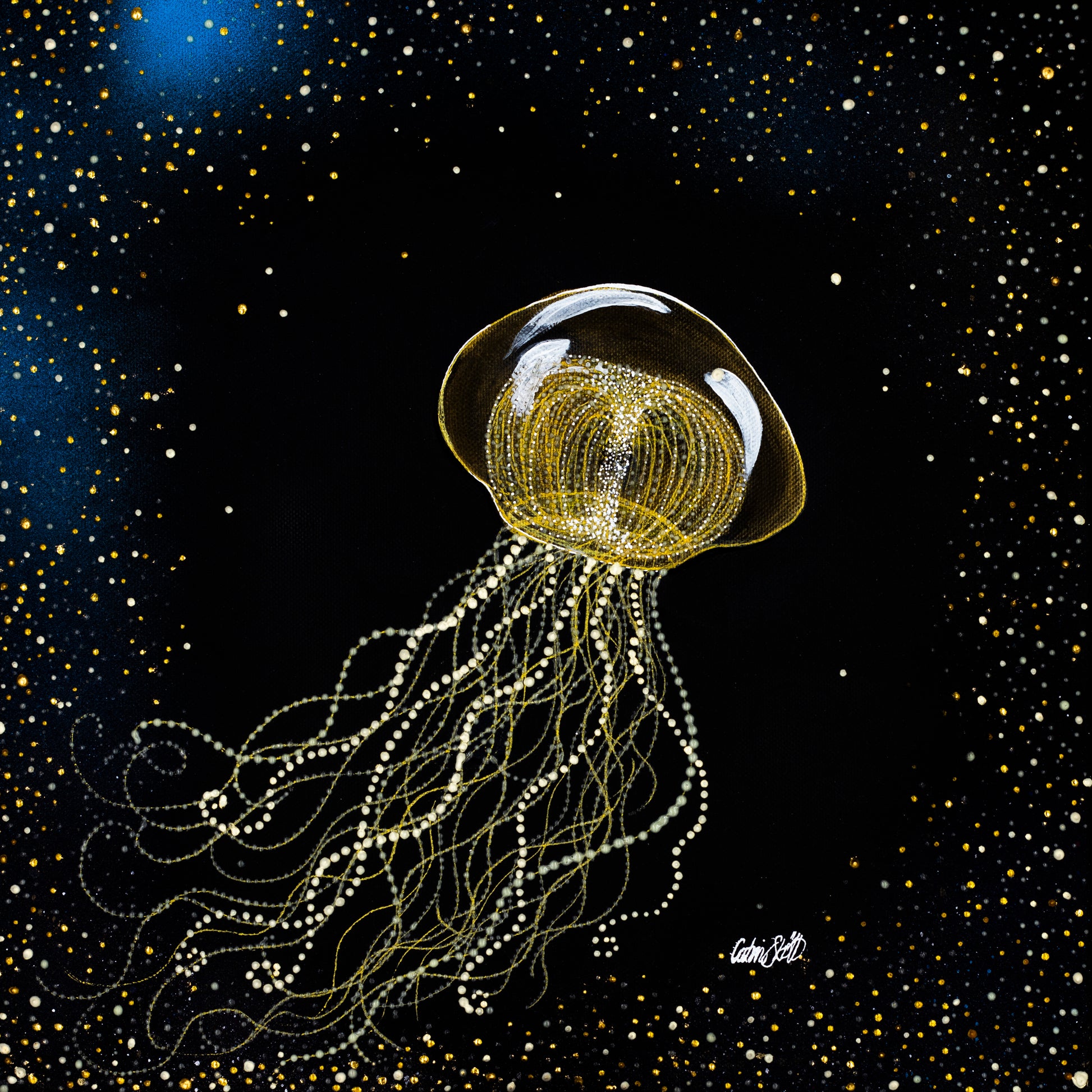 Look into the painting, be in the torus in the center of the jellyfish. ask Archangel Michael to strengthen the boundaries of your aura and fill the aura with gold. Breathe in light and love, shine your light. Say: