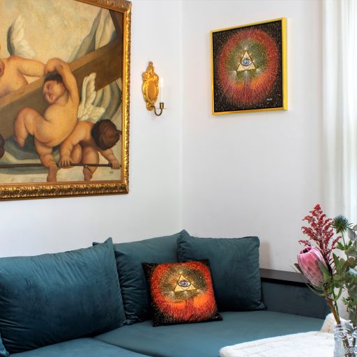 Unika kuddfodral med motiv designade från Rays of Love Collection målade av Catrin Skött i lyxig mjuk sammet. Tillverkade i Sverige. Tryck på båda sidor med dold dragkedja. Kommer i en fin presentask 25x25 cm.